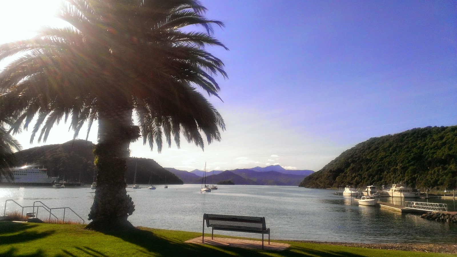 Der Queen Charlotte Drive endet in Picton, wo ich eine längere Mittagspause eingelegt hab. Picton ist eine kleine Hafenstadt in einer Bucht. Die Stadt sieht aus wie das Paradies: türkisblaues Wasser, Palmen am Strand, Segelboote auf dem Wasser. Dazu Sonnenschein und 20°, und das im neuseeländischen Winter. :) Und ich bin direkt mit den Einheimischen ins Gespräch gekommen, sodass meine Pause länger wurde als geplant.